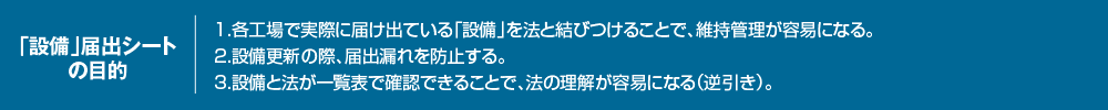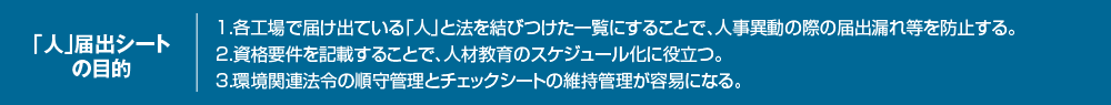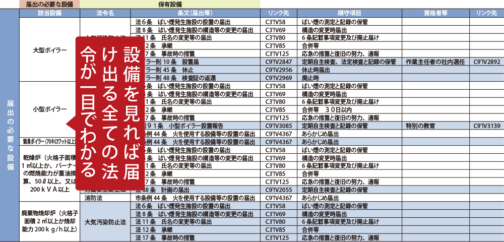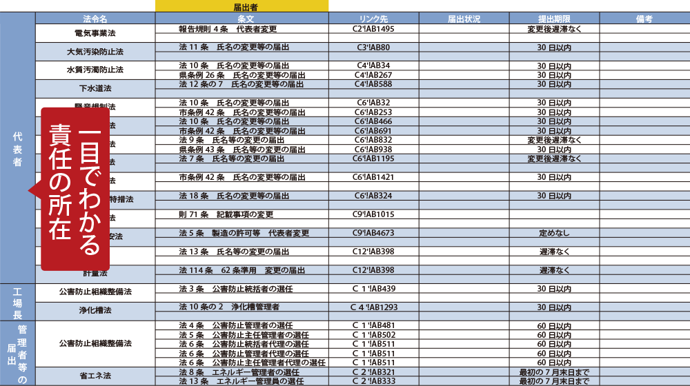 法令で必要とされる届出は何か、それが届出済みか、まだなのかを一目で確認できる魔法のチェックシート。これさえあれば法令違反をなくすことは簡単です。