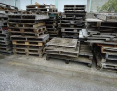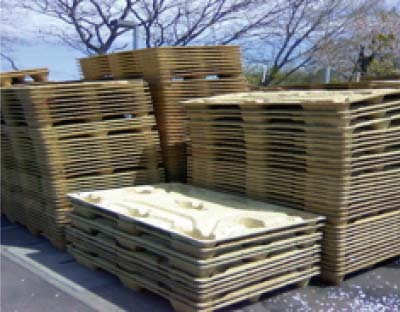 バイオマス燃料製造業者やボイラー保有の材木屋にて燃料化。もっときれいなパレットはパーティクルボードの原料になります。