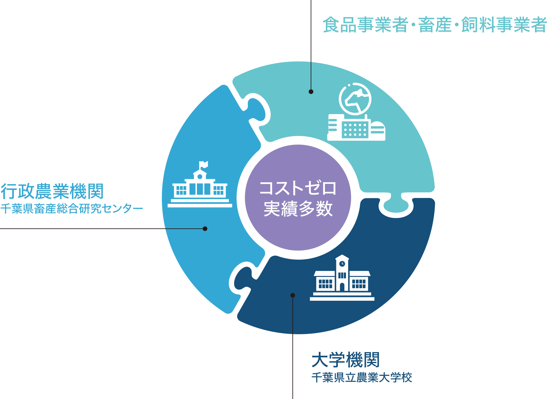 処理コストゼロへ。廃棄物そのものに価値を見出すために、我々は行政機関や大学機関と共同研究を行っています。