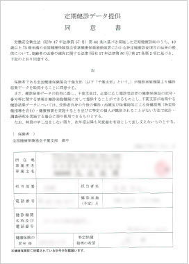 健康診断実施時にみつわ台総合病院にて対象者に対して指導 検診結果データ提供同意書 |