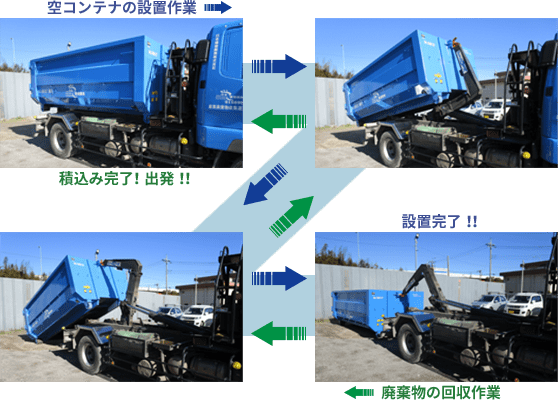 午後の作業。お客様のコンテナと空っぽのコンテナを積み替えます。安全第一!