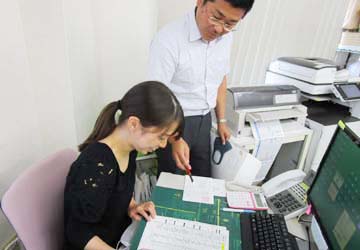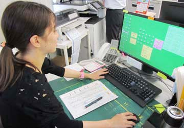 メールチェックや配車状況の確認。電話や来客の応対もします。