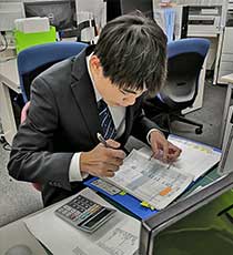 コミュニケーションが不得意とのことでしたので、毎日日誌を交換することをキャリアセンターから ご提案頂きました。仕事の悩みや気になること、日常のささいな出来事についてやり取りしていくうちに、本人の考え方や傾向がわかるようになりました。仕事に熱中しすぎて時間の感覚がなくなったり、疲れてしまうとの相談もあり、1時間おきにタイマーをセットして5分ごとの休憩をはさむようにしています。また、その日の仕事予定をホワイトボードに書いて誰が見てもわかるようにしています。伝票処理についても色別のファイルを作成して、言葉で説明しなくても周りや本人が一目でわかるように工夫しました。