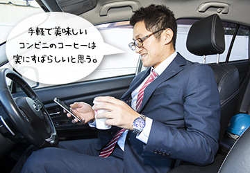 社用車に乗り込み、いざ営業活動へ!今日も一日、安全運転で。